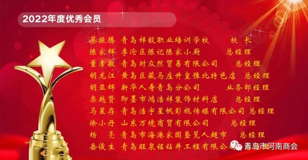荣获青岛市河南商会2022年度优秀表彰名单